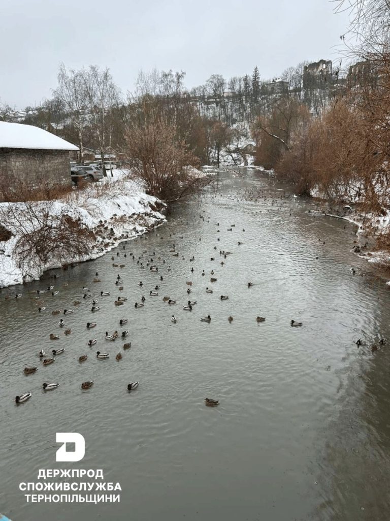 На річці Стрипі у місті Бучач цієї зими спостерігається велика кількість диких качок — переважно крижнів, які залишилися зимувати на незамерзаючих ділянках водойми. Спеціалісти попереджають: птахи потребують підгодівлі, але категорично не хлібом, — про це повідомляє Головне управління Держпродспоживслужби в Тернопільській області у Facebook.
