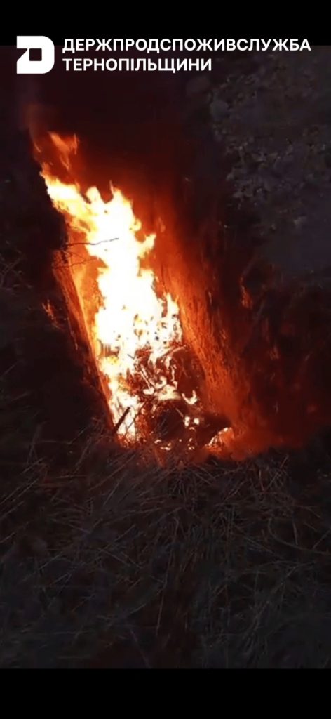 Повідомлення про загибель дикої свині надійшло на гарячу лінію Головного управління Держпродспоживслужби в Тернопільській області. Негайно фахівці служби та Тернопільської регіональної державної лабораторії виїхали на місце та організували комплекс заходів. Відібраний патологічний матеріал направили до Івано-Франківської регіональної державної лабораторії Держпродспоживслужби, яка підтвердила наявність вірусу АЧС.