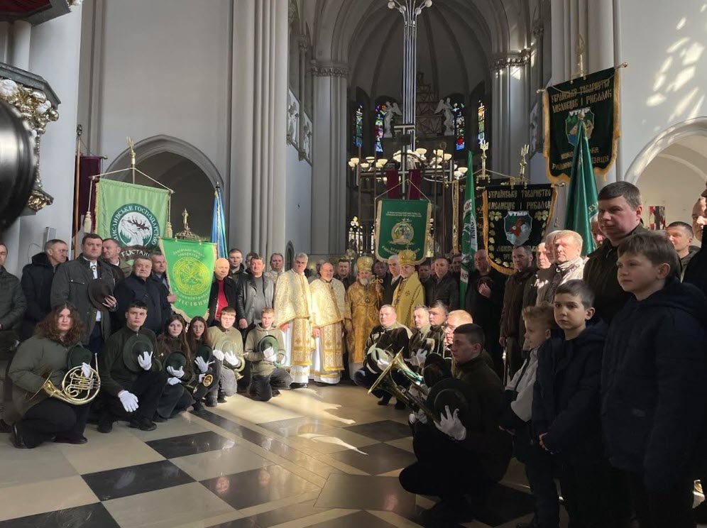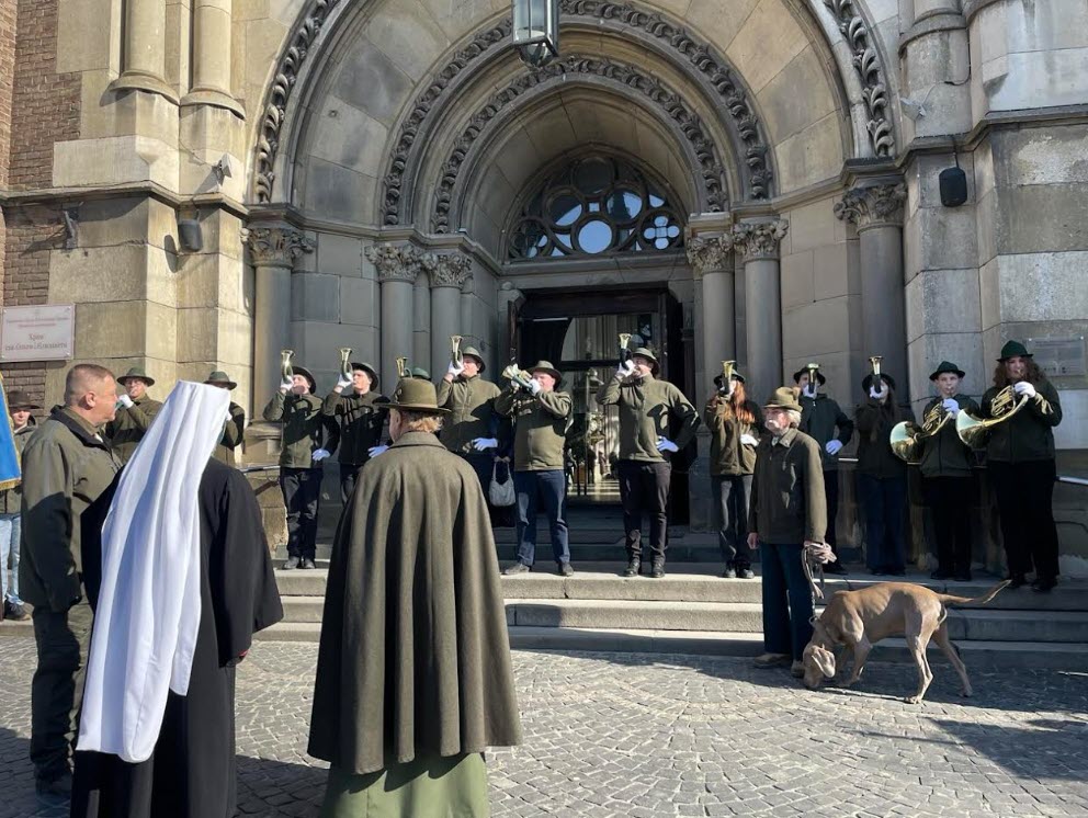 Храм святих Ольги та Єлизавети — середньовічна архітектура та модерний кодекс честі. Мисливці у парадних одностроях із знаменами та хоругвами своїх організацій. Ансамбль сигнальної мисливської музики «Лісові Сурми» Прикарпатського фахового коледжу лісового господарства та туризму. Мисливські собаки — хорти з витягнутими мордами — уважно спостерігають за дійством. Світло від кришталевих люстр відбивається від поліровки дерев’яних древків смарагдово-зелених прапорів з мисливською символікою.