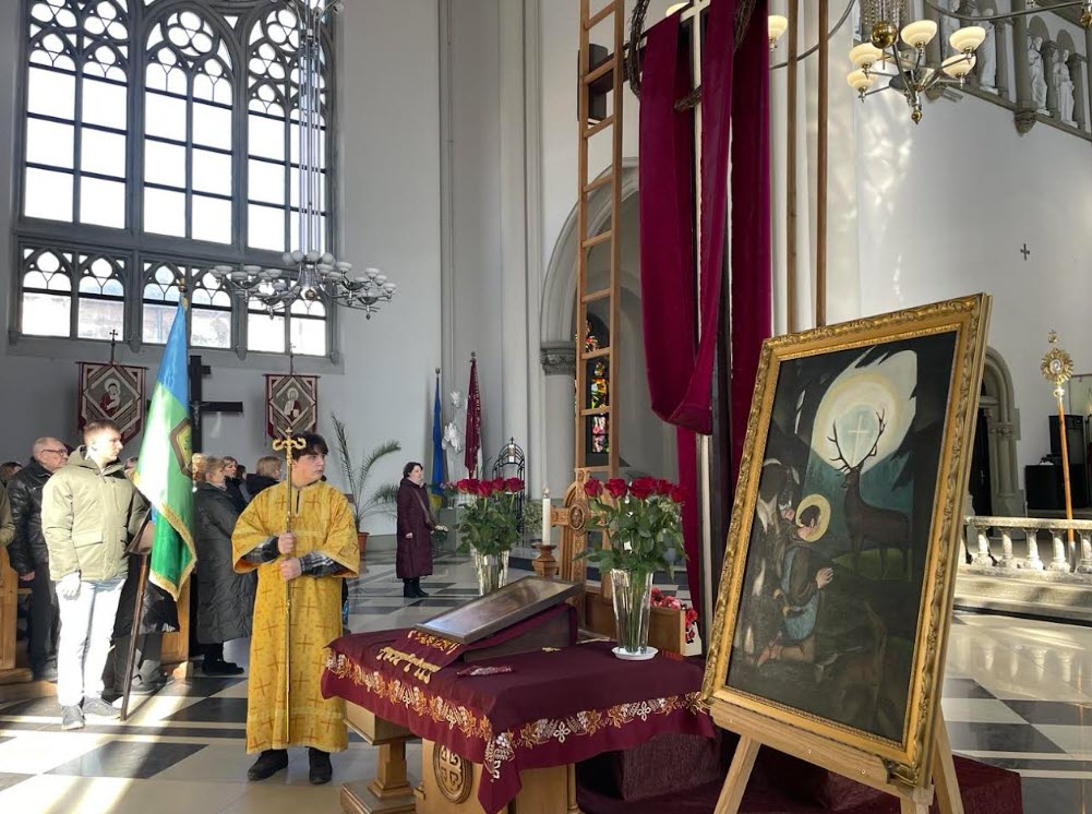 Друга частина — Архиєрейська Літургія в храмі. Богослужіння очолив Митрополит Львівський Ігор Возьняк у співслужінні з єпископом-капеланом Михаїлом Колтуном. При завершенні відбулося освячення мисливських хоругв. Організатори вручили священникам подарунки — мисливські атрибути від вітчизняного виробника Acropolis.